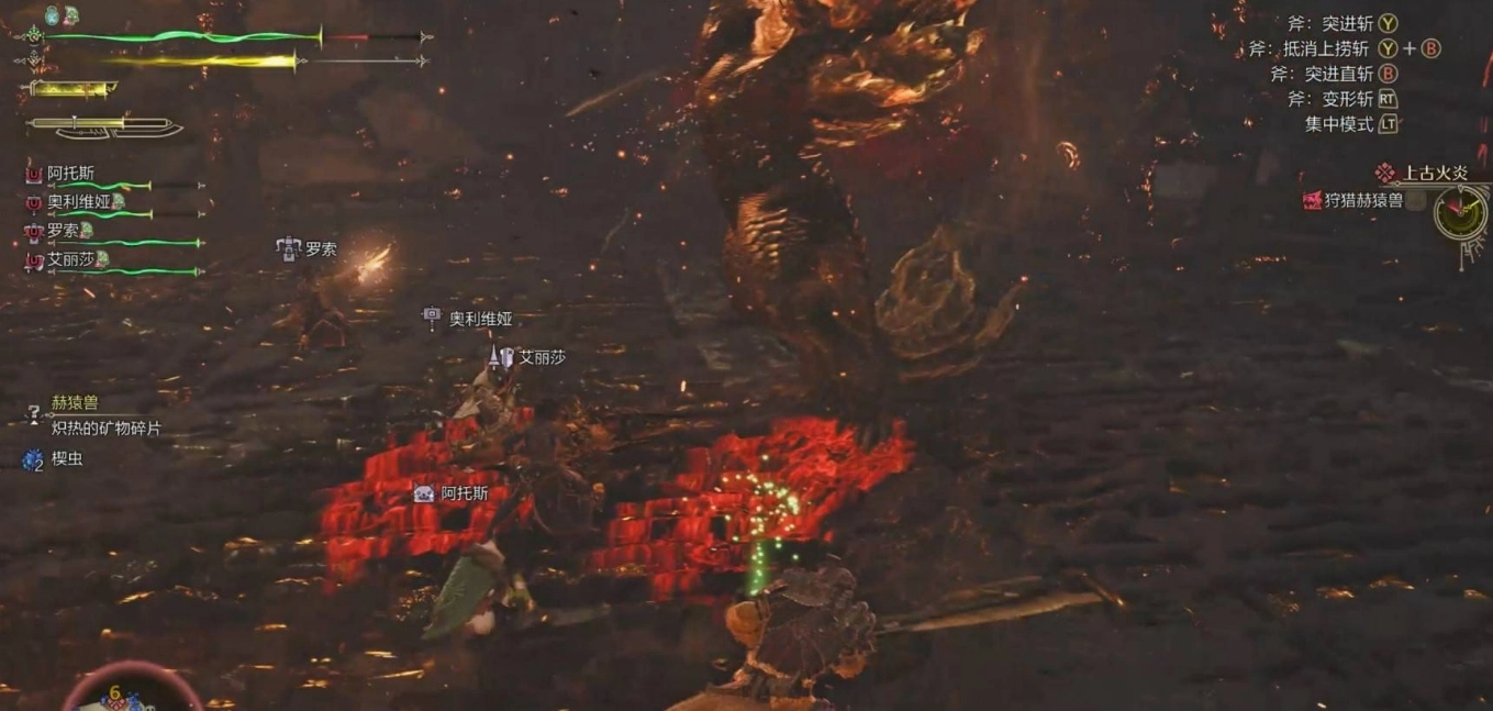 赫猿獸把手伸到下方,隨即開始蓄力,剎那間,它的全身以及地面都泛起了紅光。待蓄力完畢,赫猿獸猛地拔出大量巖漿,朝著眼前區域發動攻擊。只要迅速遠離赫猿獸前方區域,就能躲開后續襲來的巖漿。