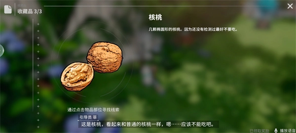 在游戲引導階段,你會被引導去觸碰前方的水晶。但在這時,別急著走向水晶,而是轉身往回走,回到起點后方的位置,如此便能找到第一個收藏品——核桃。