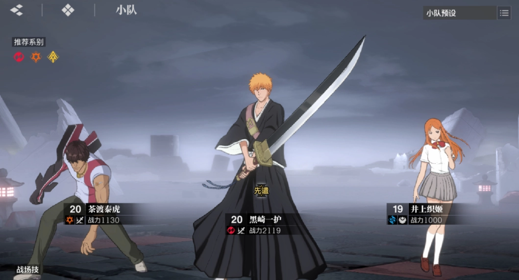 1對于新手而言,選擇茶渡、一護(hù)搭配井上組成的鐵三角陣容是最為穩(wěn)妥的。這三個角色在游戲開局時就會贈送,培養(yǎng)所需成本不高,然而強(qiáng)度卻相當(dāng)可觀。茶渡負(fù)責(zé)承擔(dān)傷害,一護(hù)專注于輸出,井上則司職回血,無論是推圖還是戰(zhàn)斗,這樣的組合完全能夠滿足需求。在前期,將資源投入到他們身上,肯定不會出錯。