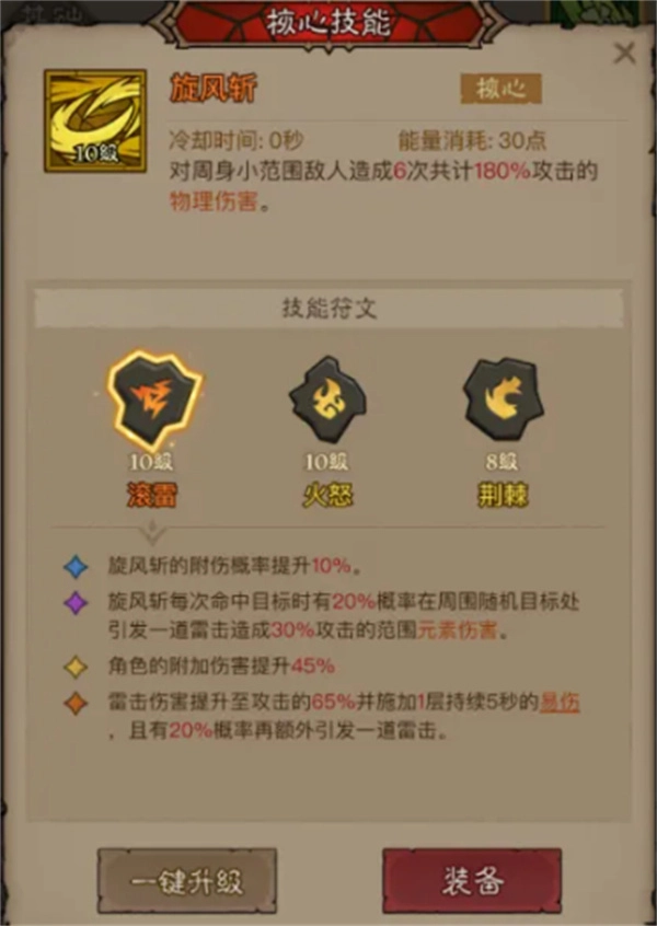 核心技能:旋風(fēng)斬——滾雷核心輸出技能,制造大量雷電傷害