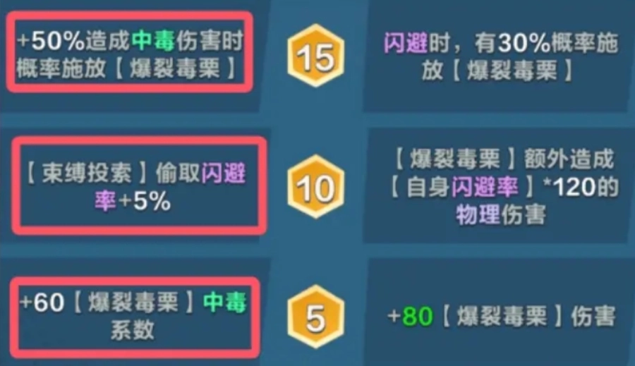 1當達到10級時,玩家可選擇獲得束縛投索偷取閃避率 +5% 的效果。此效果主要針對的是敵方閃避與中毒的聯動機制。束縛投索偷取閃避率這一特性,能使小松鼠在與敵人交鋒過程中,進一步削弱敵人的閃避能力。在卡牌搭配上,森林游俠可充分借助閃避與中毒的疊加效應,從游戲中期就開始展現出強勁的實力。