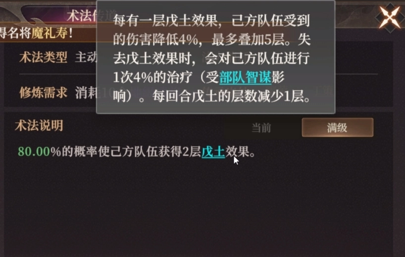 2、角色達到滿級后,有八成幾率獲得兩層戊土效果。此效果不僅能直接降低8%的傷害,還會觸發兩波治療。在戰斗中,憑借這一效果,角色特別耐扛,生存能力強,能有效保存自身實力。