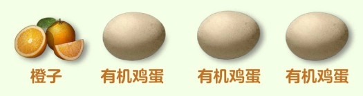 一個橙子,外加三個有機雞蛋。