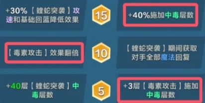 在天賦加點路徑方面,可選取右左右這種經典路線。當角色達到5級時,應果斷選取增加3層毒素攻擊以施加中毒層數的天賦;到10級時,再次選擇讓毒素攻擊效果翻倍的天賦,如此一來,毒龍的中毒傷害對敵方構成的威脅進一步提升。而到了至關重要的15級,大家能夠選擇增加40%施加中毒層數的天賦,這會讓毒龍的中毒能力在戰場上達到最強。不過,在實際戰斗中,依靠中毒來打出傷害需要一定時間進行積累。所以,全局的戰略核心在于怎樣巧妙提升自身的生存能力,以保證在中毒傷害逐步發揮作用的過程中,自己不會先被淘汰出局。