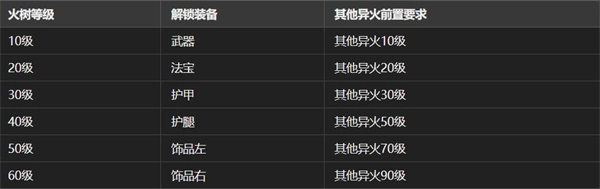 每10級(jí)火樹(shù)解鎖不同部位的入體能力(詳見(jiàn)下表)。