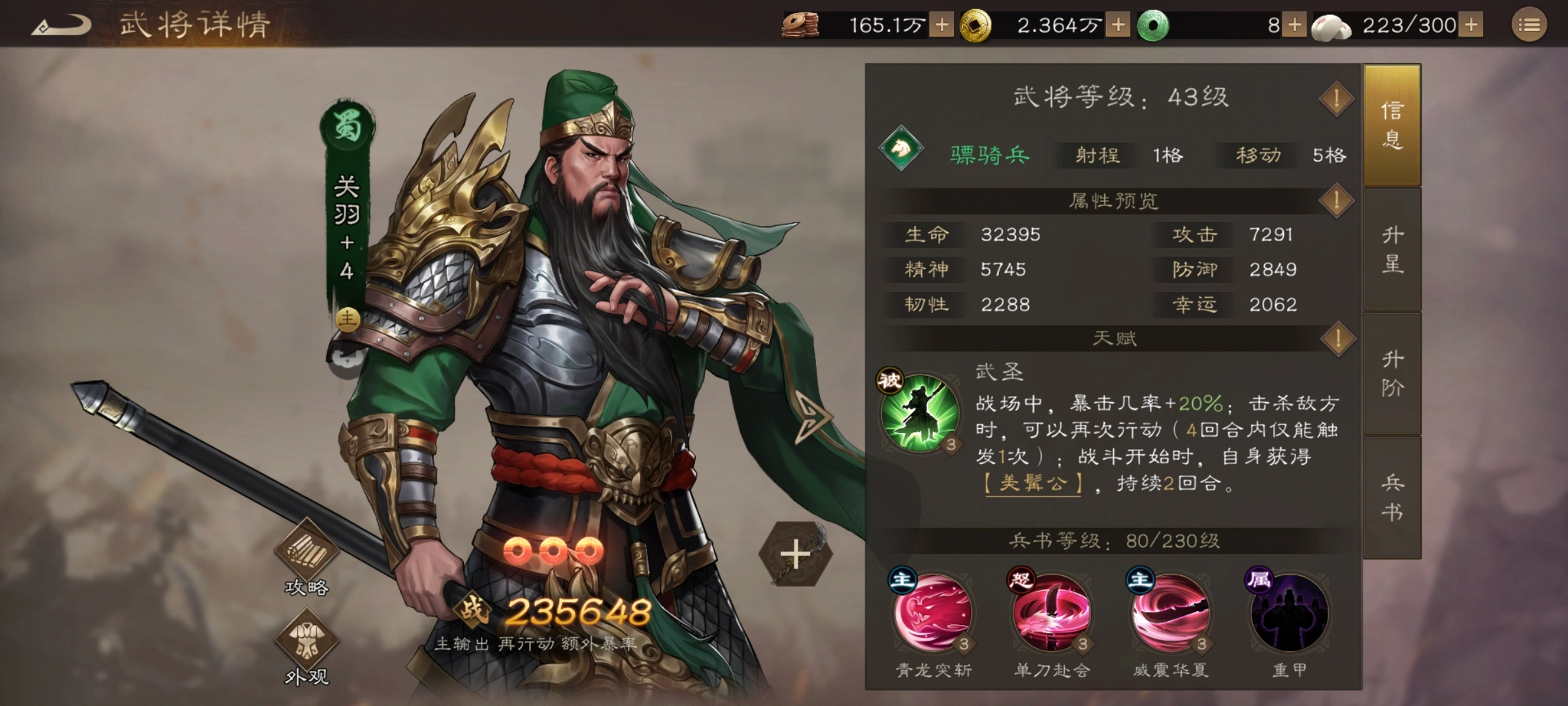 克制循環:騎兵(關羽)→ 步兵(傷害+30%);槍兵 → 騎兵(關羽傷害-25%)。