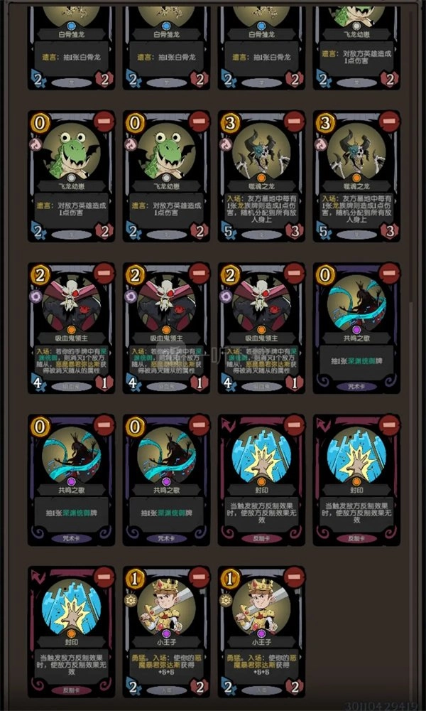 《月圓之夜CCG》里的深淵龍流派,屬于終局控制類構筑,其核心為“吞噬+進化+高費爆發”,該流派依靠強力生物的成長以及場面壓制力,對于偏好控制節奏、鐘情厚積薄發的玩家而言,是極為合適的選擇。