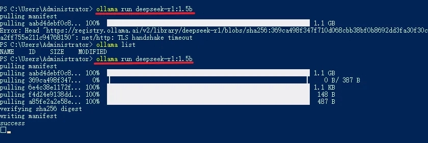 如果下載完成后報錯,就再運行一遍下載命令,提示“success”就代表下載完成了。