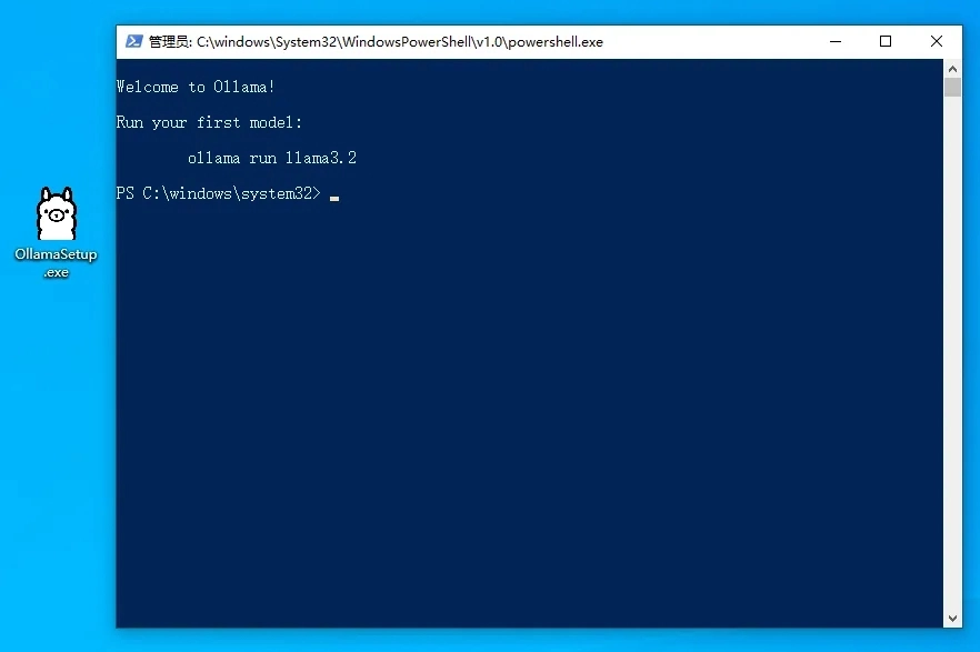 下載完成后點擊安裝,安裝成功后會彈出一個命令行界面。Ollama本身不存在可視化界面,不過這并不妨礙后續使用,畢竟它僅僅是一個框架。