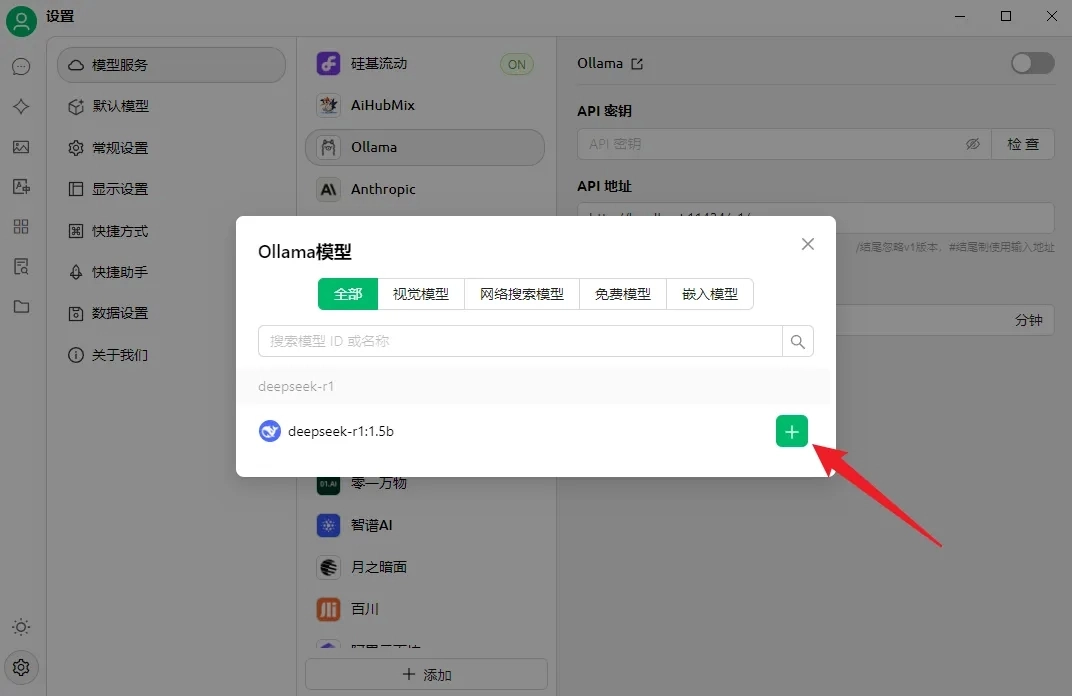 在彈出的窗口中可以看到自己本地的模型,點擊右側的按鈕添加模型即可。