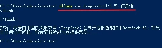 接下來,在命令行中輸入「ollama run deepseek-r1:1.5b + 問題」,就能開啟AI對話。要是你下載的是7b模型,那就輸入「ollama run deepseek-r1:7b + 問題」,依此類推。
