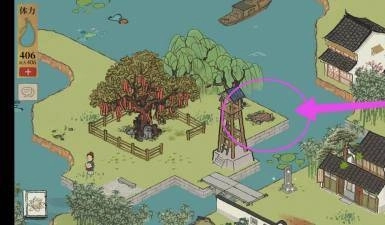 1. 第一把鑰匙位于祈福樹小島上,其旁邊建有望火樓。