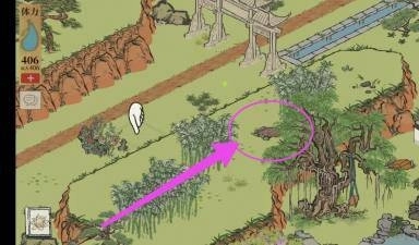 6、第六把鑰匙位于松樹與杜鵑花叢所在之處,其左側為茅草屋。