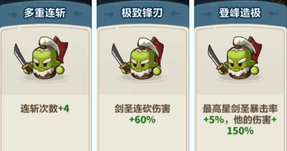 在強(qiáng)化詞條的挑選方面,要是刷到「無(wú)敵斬」大招,那是一定要選的!其余詞條大體可分為3類,具體為:以【連斬次數(shù)、傷害增傷】【合成高星劍圣概率提升】為主的「通用強(qiáng)化類」。