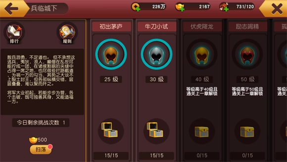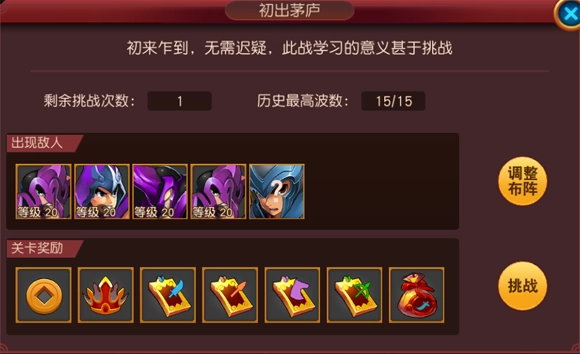 每天擁有1次挑戰(zhàn)機會與1次掃次數(shù),凌晨5:00會刷新并重置次數(shù)。