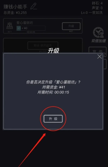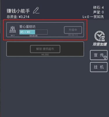 在《掛機當富豪》游戲里,愛心蛋糕坊能夠進行升級。進入游戲后,在首頁上方找到“升級”按鈕,點擊進入,升級需要消耗資金。具體內(nèi)容可查看下方分享。