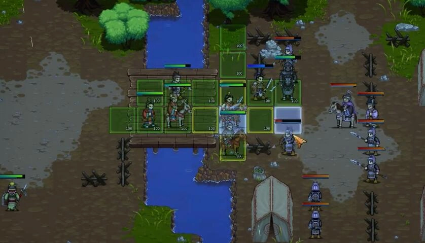 具體打法為,游戲開局時,選用趙云并讓其攜帶疾行符,迅速搶占西側區域。借助該區域地形所提供的15%閃避加成,快速消滅弓兵。關羽則裝備青龍刀,沿著南側行動,以此觸發水戰精通被動效果,從而抵消移速懲罰。鑒于關羽速度相對稍慢,此時可直接往后方行進。簡雍要在第二回合到來之前,對遠程單位施展泥沼術,以此降低它們的攻擊頻率。與此同時,劉備需觸發與糜竺的隱藏對話,使全隊臨時提升10%暴擊率,以便應對高防御單位。