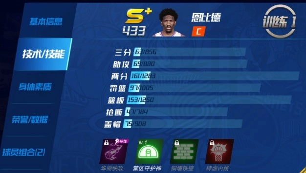 【三技能】肆虐內線:若己方場上存在“手術刀傳球”且該球員處于場上,我方控球后衛的助攻數值會提升 X%,同時該球員自身的進攻能力提升 Y% 。(消耗物品:中鋒手冊、蓋帽訓練卡、啞鈴、喬爾·恩比德訓練計劃,陪練教練要求為自身且達到大師級別)