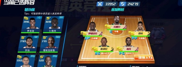 拉塞爾、伊戈達拉、鄧肯、雷·阿倫、帕克。這套陣容的亮點在于,首發的每一位球員平民玩家都能通過抽獎免費獲取,雖說耗時可能久些,但在可白嫖的球員里,這套組合強度堪稱頂級,并且能用至游戲后期都不落后。