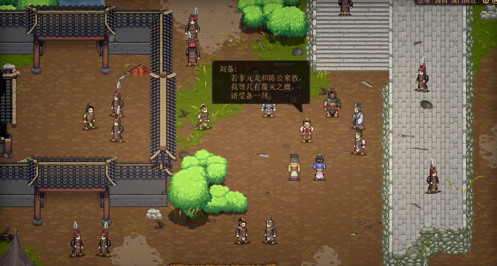 整個任務共分為三個階段。第一階段,玩家能夠借助張飛的咆哮技能,高效清除城門處的敵人。這款游戲以劉備的視角展開,在這一階段,劉備需統領弓兵,從而實現遠距離壓制。