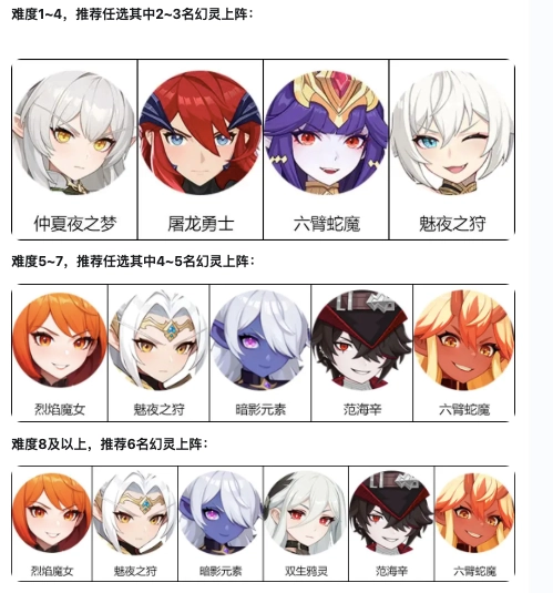 根據(jù)不同難度,小編也為大家進(jìn)行了一下幻靈上陣的匯總和推薦。