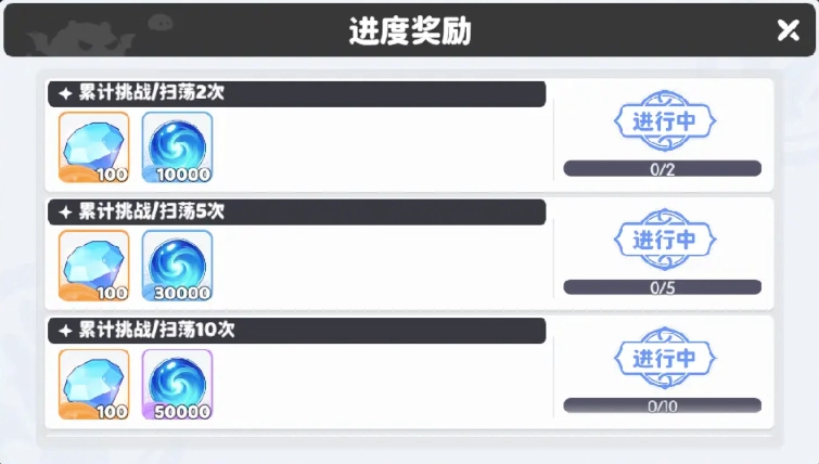 進(jìn)度獎(jiǎng)勵(lì)包含兩項(xiàng),即鉆石與幻靈經(jīng)驗(yàn),達(dá)成指定次數(shù)就能獲取進(jìn)度獎(jiǎng)勵(lì)。