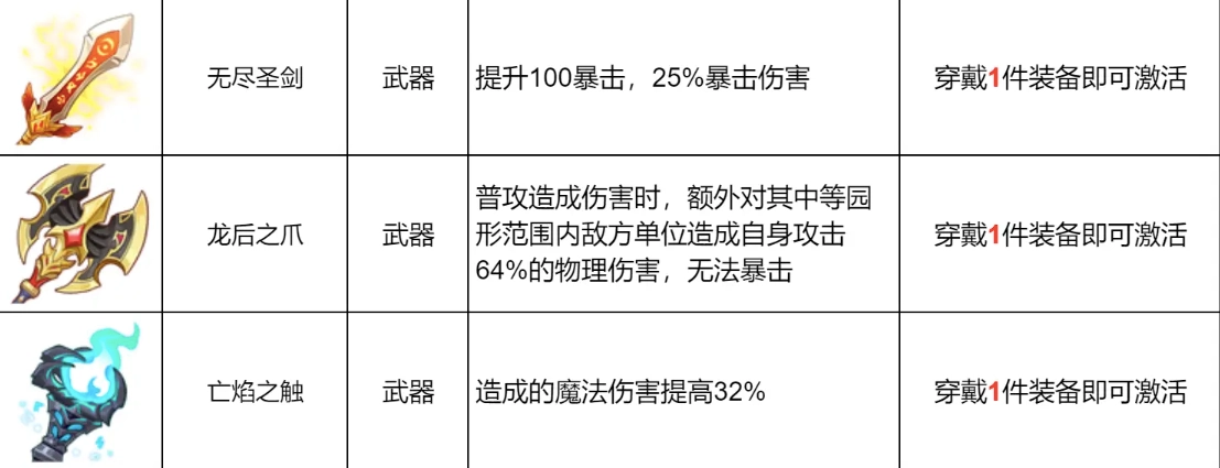 無盡圣劍,穿戴后提升100暴擊25%暴擊傷害率,與雅典娜非常適配。