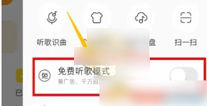 3、尋找到【免費(fèi)聽歌模式】并點(diǎn)擊開啟,操作完成。