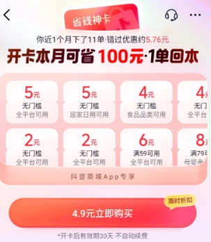 大家有沒有開通過抖音的特惠省錢卡呀?買東西時滿減優惠超劃算,一張無門檻的全平臺滿減券就能回本。但有些小伙伴開通后想關閉,卻找不到關閉通道,下面咱們就一起來瞧瞧。