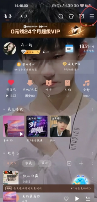 1. 打開酷狗音樂,參照圖示,點擊右上角被圈出的位置。