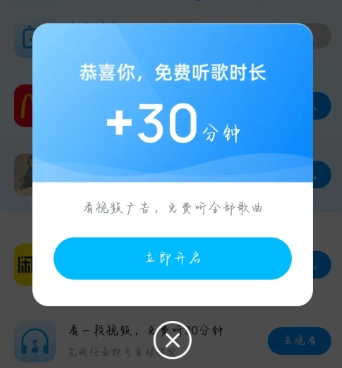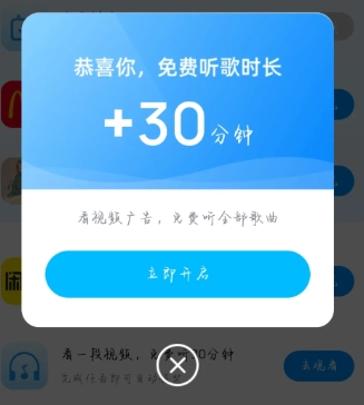 5. 如圖五所示,若您想要獲取更多時長繼續(xù)觀看視頻,點擊“立即開啟”即可;若不需要,直接叉掉就好。