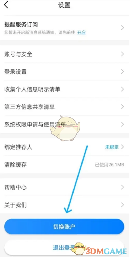 2. 進入設(shè)置頁面后,點擊下方的“切換賬戶”選項,接著重新輸入賬號和密碼進行登錄就可以了。