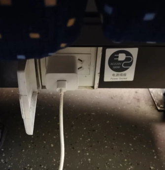 就在放腳的地方,兩個座位縫隙的正下方!!!而且是帶插頭可以使用的!!!但實在太難找了,得用力彎腰低頭才能看到。