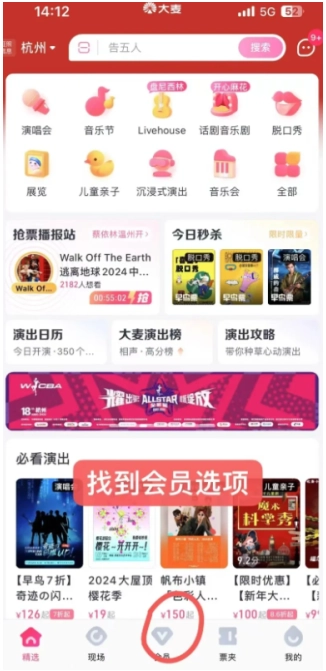 開啟大麥應(yīng)用程序,進(jìn)入到首頁(yè)界面,尋找到會(huì)員按鈕,然后點(diǎn)擊該會(huì)員按鈕。