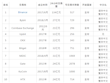以規模和交易量來說,可以觀察到前幾名和后面幾名落差很大,也不是每個交易所都有中文。原則上,不在這排行榜上的交易所就不用考慮了。