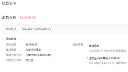 問題就出在這兒,存在漏洞。我完成支付后,他把支付寶與抖音賬號(hào)解綁了。如此一來,退款時(shí)就會(huì)發(fā)現(xiàn)原本的退款路徑已中斷,只能退到他的抖音零錢里。