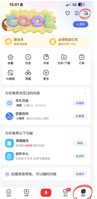 在手機端,可在“我的”板塊中查找相關設置。另外,無痕模式也很實用,在首頁就能找到對應的按鈕。