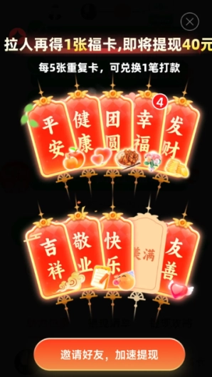積分之后便是集卡,需集齊十張。接著,真正的意圖就暴露出來了!當你只差一張卡時,你會不斷重復獲得同一張卡,要是得到五張一樣的卡,就給你0.02元現金,然而會把那種卡給消除掉,這就相當于你【白白拉了五個人】!如圖