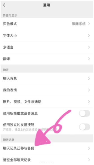 1. 開啟微信,接著點擊“設置”,再依次點擊“通用”、“聊天記錄遷移與備份” 。