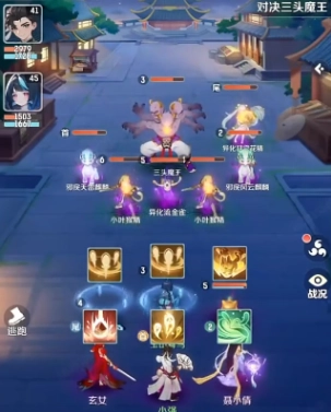 挑戰三頭魔王時,玄女的作用不容小覷,同時小強也是必選角色。此戰斗主打單體爆發,優先集火三頭魔王是關鍵策略。輔助位方面,靈小璃是不錯的選擇,她具備治療與增益效果,既能有效維持隊友血線,又能為輸出角色提升暴擊與攻擊力。此外,玉山青鳥因其控場能力也值得入選,它能夠輕松打斷boss技能,進而緩解debuff帶來的負面影響。在戰斗初期,攻擊藥與暴擊藥就要及時使用。
