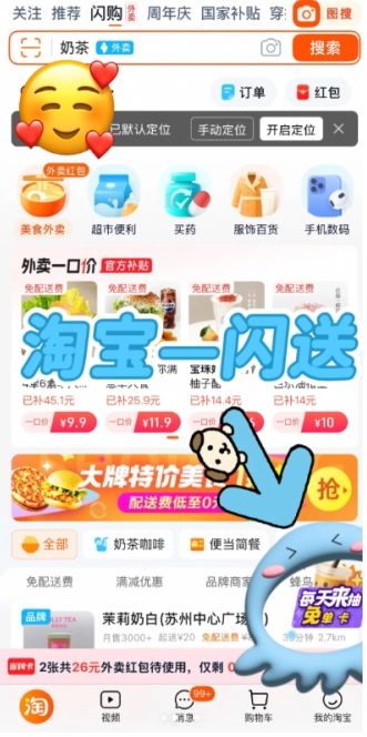 開啟淘寶應用程序,輕點右下角的閃購入口進入。