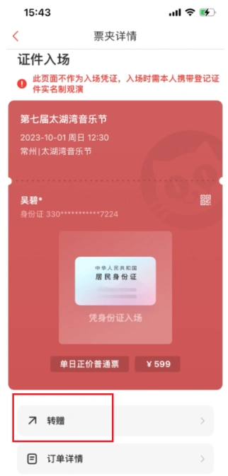 實名制演唱會門票,部分支持轉贈,部分不支持。大家查看自己票夾中是否有轉贈選項,就能知曉啦。