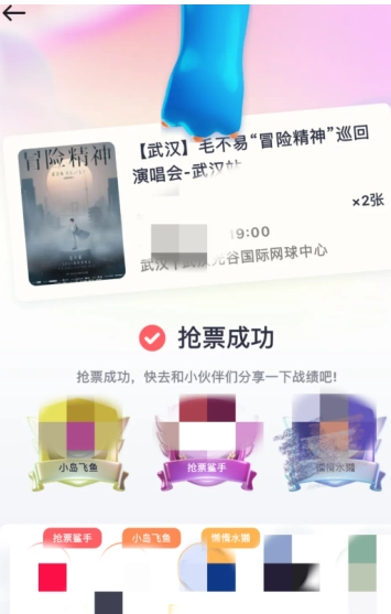 7、搶票成功后,戰報中的“搶票鯊手”即為天選之人,具體可查看P6。出票后,電子票將存于隊長的票夾。考慮到信息安全與經濟安全,建議與熟悉的人一同搶票。