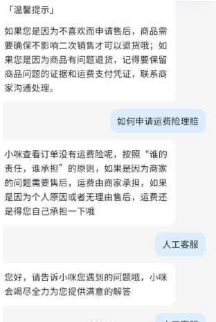 2,首先嘗試說“申請退運費補貼”,若此說法無效,再向人工客服說“我的信譽良好,可以幫助我申請運費補貼嗎?”