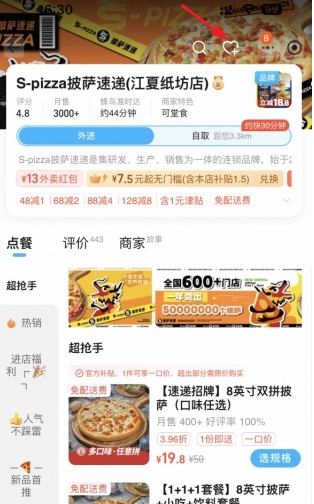 要收藏自己心儀的店鋪很簡單,打開店鋪頁面,點擊右上角的愛心圖標即可完成收藏。需要注意的是,若之后想查找已收藏的店鋪,只能在餓了么平臺上操作,淘寶閃購并沒有提供收藏店鋪的查看入口。
