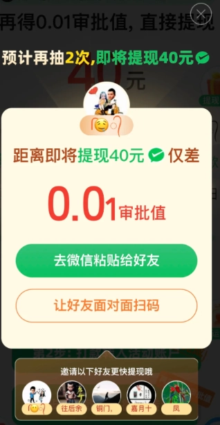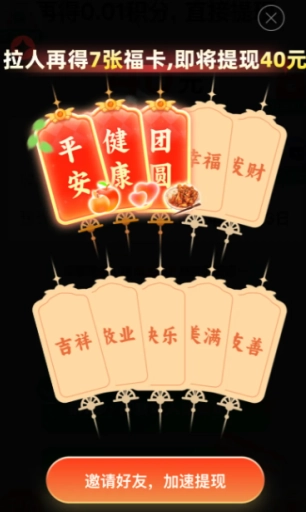 當我邀請了兩個人,滿心歡喜打算提現的時候,新的套路再度冒了出來!居然出現了審批值,精確到小數點后兩位,也就是0.01元。就為了這最后的0.01元,我又開始瘋狂拉人。可拉完人之后,規則又變成了需要達到提現值。等滿足提現值后,又冒出來要10積分,好不容易積分夠了,緊接著又出現了福卡,我都快被這些層出不窮的東西給弄暈頭轉向了!