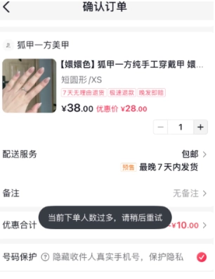 如題,顯示“當(dāng)前下單人數(shù)過多”的解決辦法找到了!