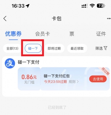 要是買東西時碰到那種能通過碰一碰獲得無門檻立減優惠的店鋪,不妨先結算一件商品,碰一碰獲取無門檻優惠券,接著再去結算其余商品。畢竟這優惠券要是不用,就白白過期浪費了。