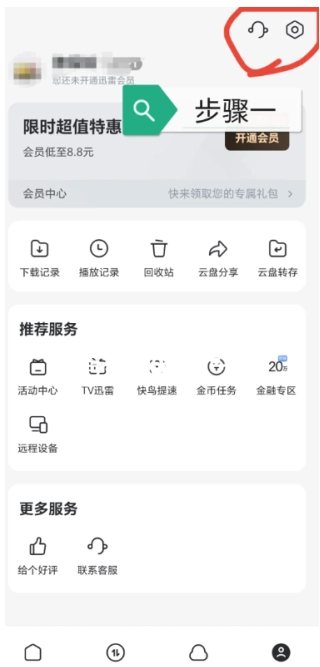 1. 開啟迅雷應用程序,輕點“我的”,接著點擊右上角的設置選項。