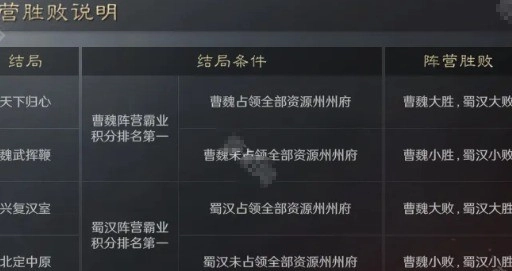 三國謀定天下S8賽季的霸業結算規則是怎樣的呢?游戲現已正式開啟S8隆中對賽季,在本賽季中,依舊會劃分成2個陣營,分別為曹魏和蜀漢。而且本賽季共有4種結局,最終取得勝利的陣營能夠獲取專屬頭像框。接下來,就給大家詳細解釋一下S8賽季的霸業結算規則。